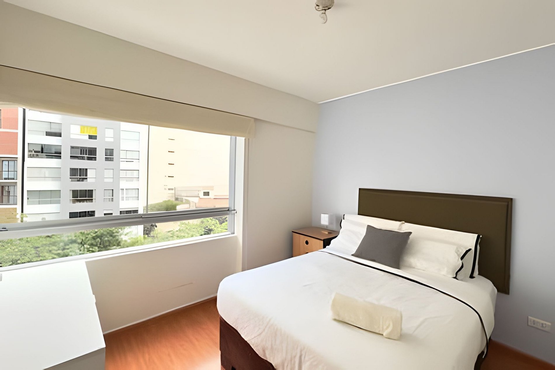 Cómodo y amplio departamento límite de Miraflores Disfruta de una estancia confortable en este espacioso departamento ubicado en el límite con Miraflores, en una zona tranquila del distrito de Surquillo. Ideal para viajes de trabajo o descanso, con todo lo necesario para que te sientas como en casa. - Wifi - Smart TV - 2 habitaciones - 2 baños completos - Sala-comedor amplia y luminosa - Cocina completamente equipada ¡Haz tu reserva hoy y vive una excelente experiencia en Lima Ubicado muy cerca de la zona turística y empresarial de Miraflores, este céntrico alojamiento es perfecto para familias, viajeros o quienes vienen por trabajo. El departamento cuenta con 2 Habitaciones. La habitación principal con cama queen. La segunda habitación con vista al parque. Ambos con escritorio y clóset. 2 baños completos. Una sala amplia con TV Smart y Wifi de Alta Velocidad. Además de un comedor para disfrutar de tus comidas. Una cocina completamente equipada. Todo ha sido preparado con atención al detalle para ofrecerte el máximo confort. Estaremos pendientes antes y durante tu estancia para asegurarnos de que tengas una excelente experiencia. El edificio cuenta con seguridad 24/7 y en los alrededores encontrarás parques ideales para caminar, ejercitarte o simplemente relajarte. Los huéspedes tendrán acceso a todo el departamento. El ingreso es con chapa electrónica. Contamos con un equipo que está dispuesto ayudarte con cualquier duda o consulta. Se pedirá foto de los documentos antes del ingreso. Check in: 4pm Check out: 11am No está permitido fumar. No está permitido el ingreso con mascotas. No está permitido hacer reuniones o fiestas.